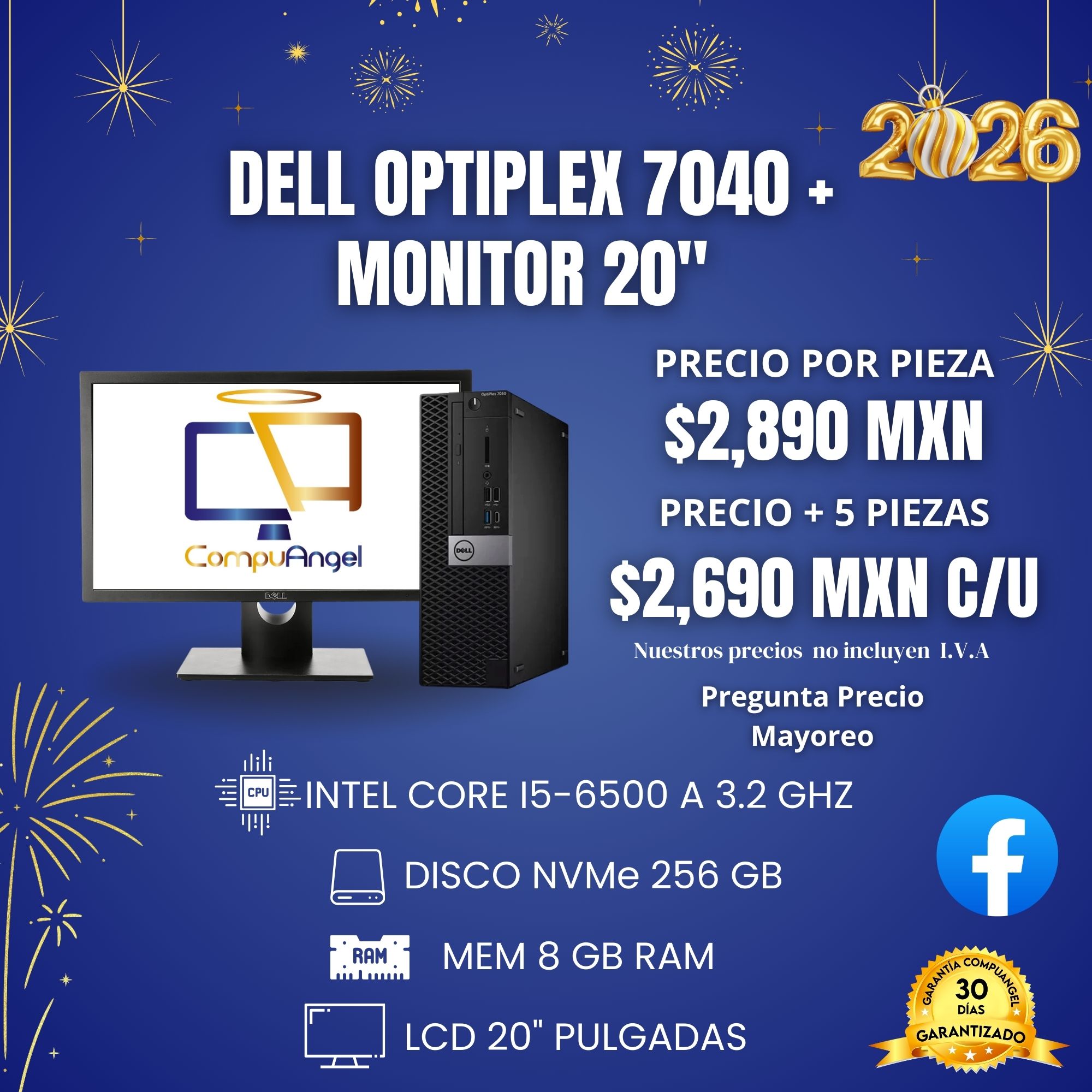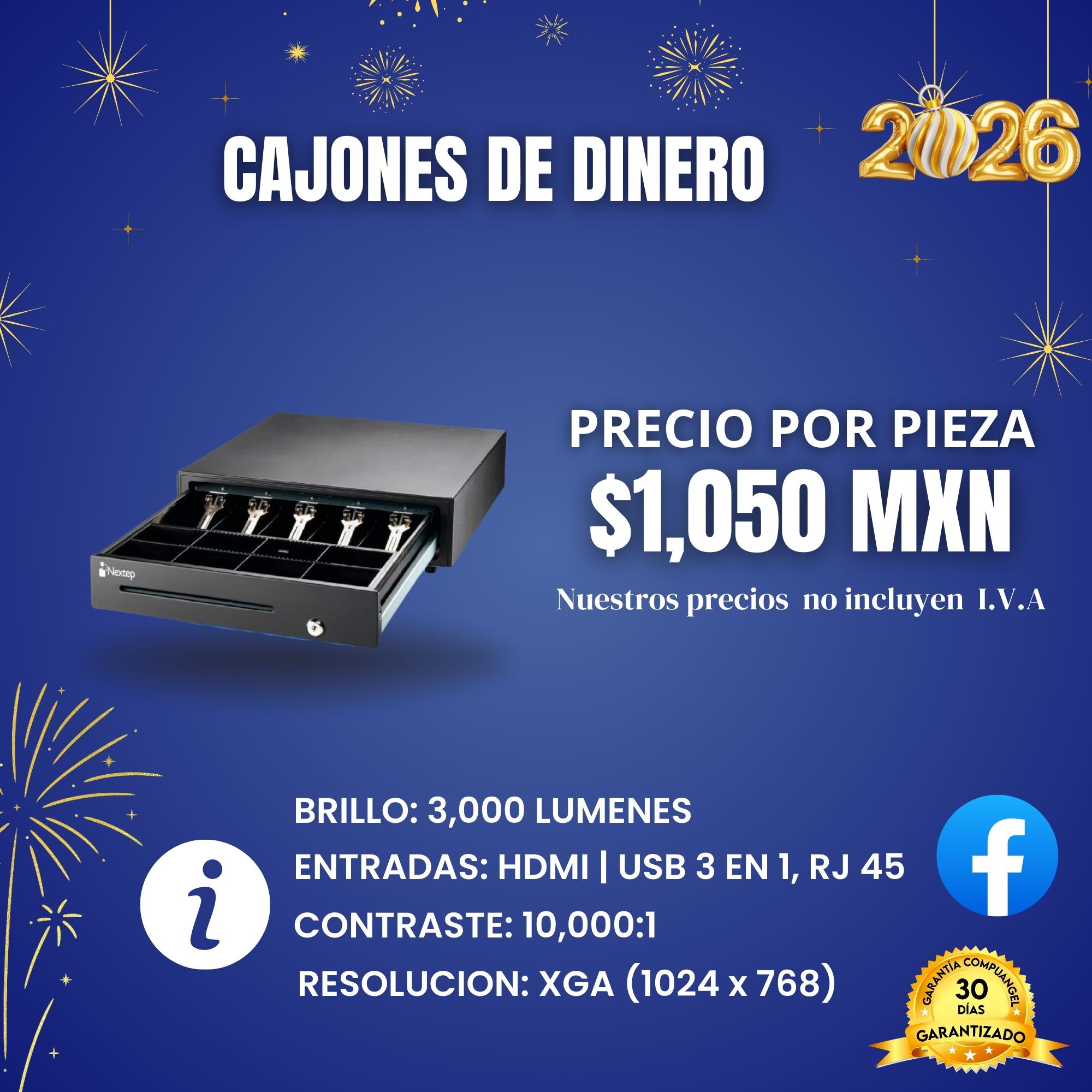 Agradecemos mucho que tus pagos sean en efectivo, aceptamos efectivo si vienes a recoger el equipo a nuestras oficinas